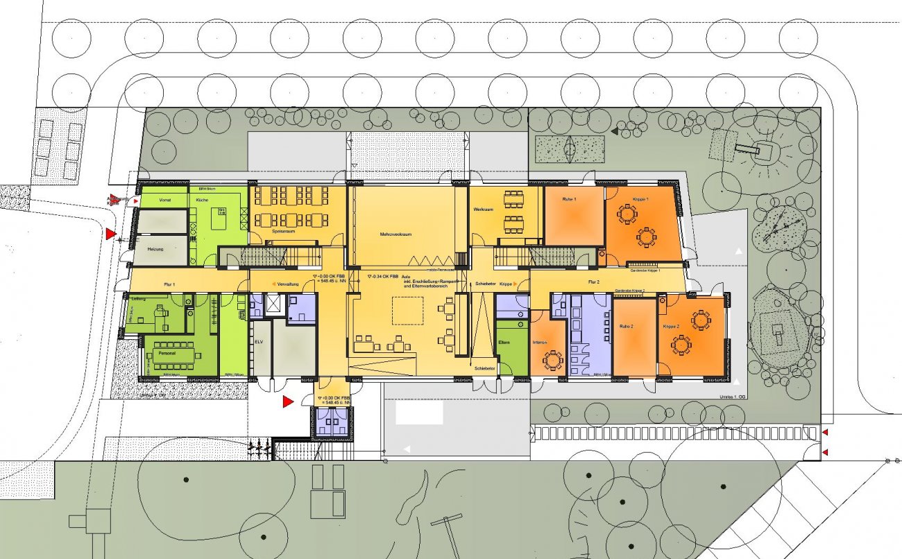 Neubau einer Kindertagesstätte 2 Krippen- und 3 Kindergarten- und einer Hortgruppe in Massivbauweise