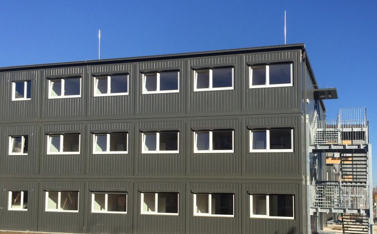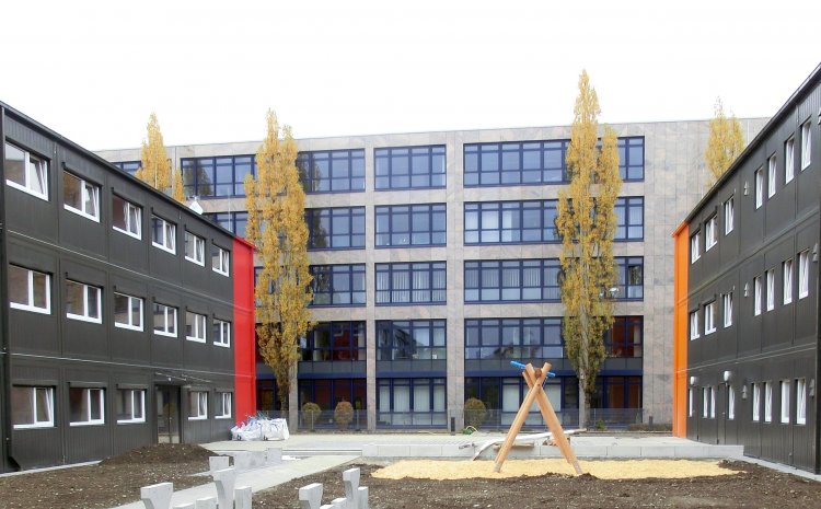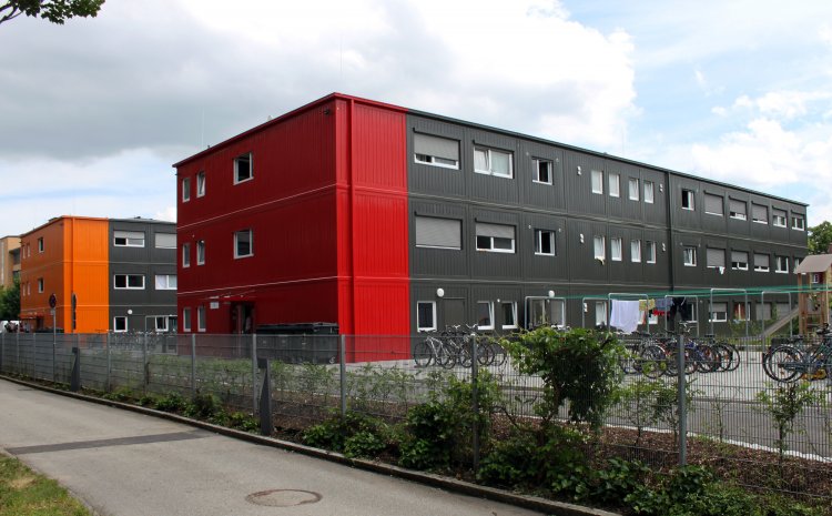 Gemeinschaftsunterkunft für 300 Personen in 4 Gebäuderiegeln – Unterbringung in Zweibettzimmern